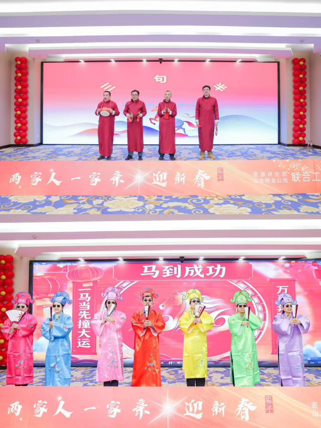 春潮送暖启新程,凝心聚力赴新章。为传承中华传统节日文化,拉近职工情谊纽带,凝聚奋进力量,厚植“家”文化底蕴,经精心准备,2月6日,资源评价院与山水物业公司联合工会在山水大酒店3楼华夏厅成功举办“两家人,一家亲”迎新春联欢活动。全体职工欢聚一堂、喜乐相伴,在暖意融融、年味浓厚的氛围中共迎新春,共同度过了一段充满欢笑与温情的时光。