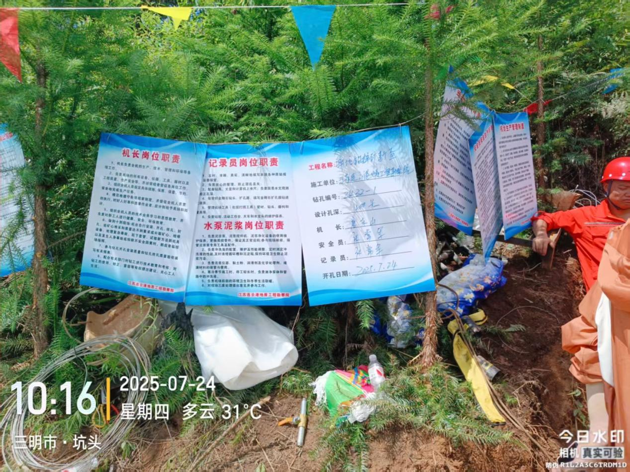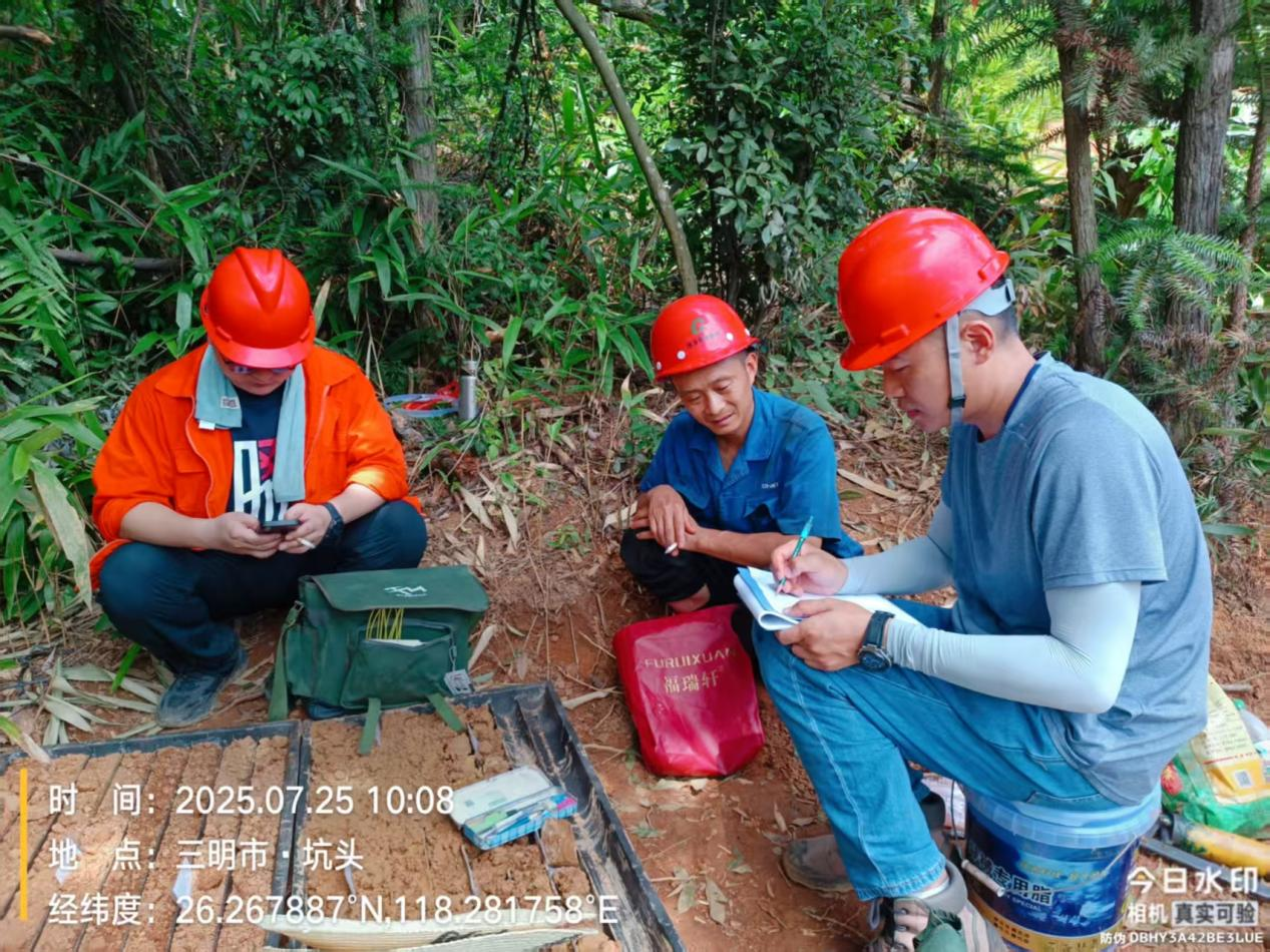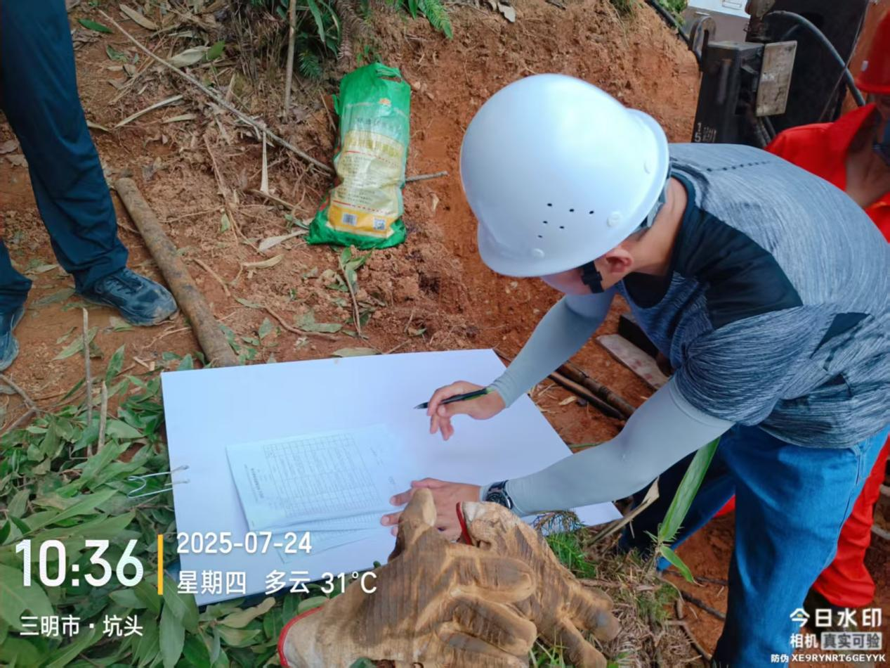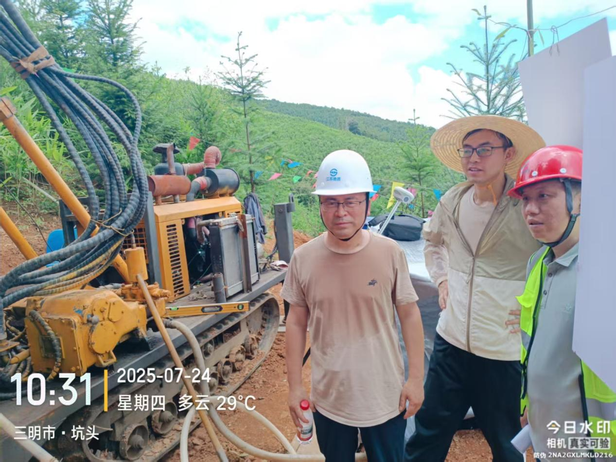 2025年8月3日,资源调查与评价院党委书记钱美平同志带队深入福建省尤溪县谢坑矿区(谢坑矿段、寨头矿段)地质技术服务项目驻地协调督导。 谢坑矿区地质技术服务项目是我局省级重点项目,项目自7月启动以来,已完成前期踏勘、驻地建设等工作,累计放样9个钻探孔位,安全备案与工程管理有序推进。钱美平实地查看了钻探施工与物探数据采集情况,对项目组工作成效给予肯定,并就下阶段工作提出要求:一是传达局领导指示。在勘查技术和总体工期安排上,由我院统筹,联合金东公司、地环公司三方会商,深化合作、协同作战,以找矿成果为核心,倒排工期、挂图作战,确保各项任务高效落实。二是量化生产目标。确保7台钻机日均进尺40米以上,8月中旬前增至10台;8月31日前完成寨头矿段物探数据采集及解译、水文孔位布设、主矿体含水层抽水试验。三是强化管理机制。严格执行“日跟踪,周调度”双循环机制,实现信息共享与高效协同,全力冲刺年度找矿目标。四是牢抓安全生产。强化安全规范化建设,严格落实全局调度会安全要求,将安全管理贯穿项目全过程。 烈日炎炎,协调督导期间,院领导为奋战在酷暑一线的项目组成员送上防暑降温物资,带来组织的深切关怀。钱美平特别强调:“要充分发挥基层党组织战斗堡垒作用和党员先锋模范作用,让党员突击队的旗帜在攻坚克难一线高高飘扬,展现敢打硬仗、能打胜仗的突击队风采。要围绕地质局全力推进新一轮找矿突破战略行动,严格落实任务,确保项目高质量完成。同时,要科学安排高温作业时间,落实防暑降温措施,确保安全生产。” 院领导一行的指导与慰问,极大地鼓舞了项目组全体成员的士气,大家纷纷表示将不负重托,全力以赴完成任务。